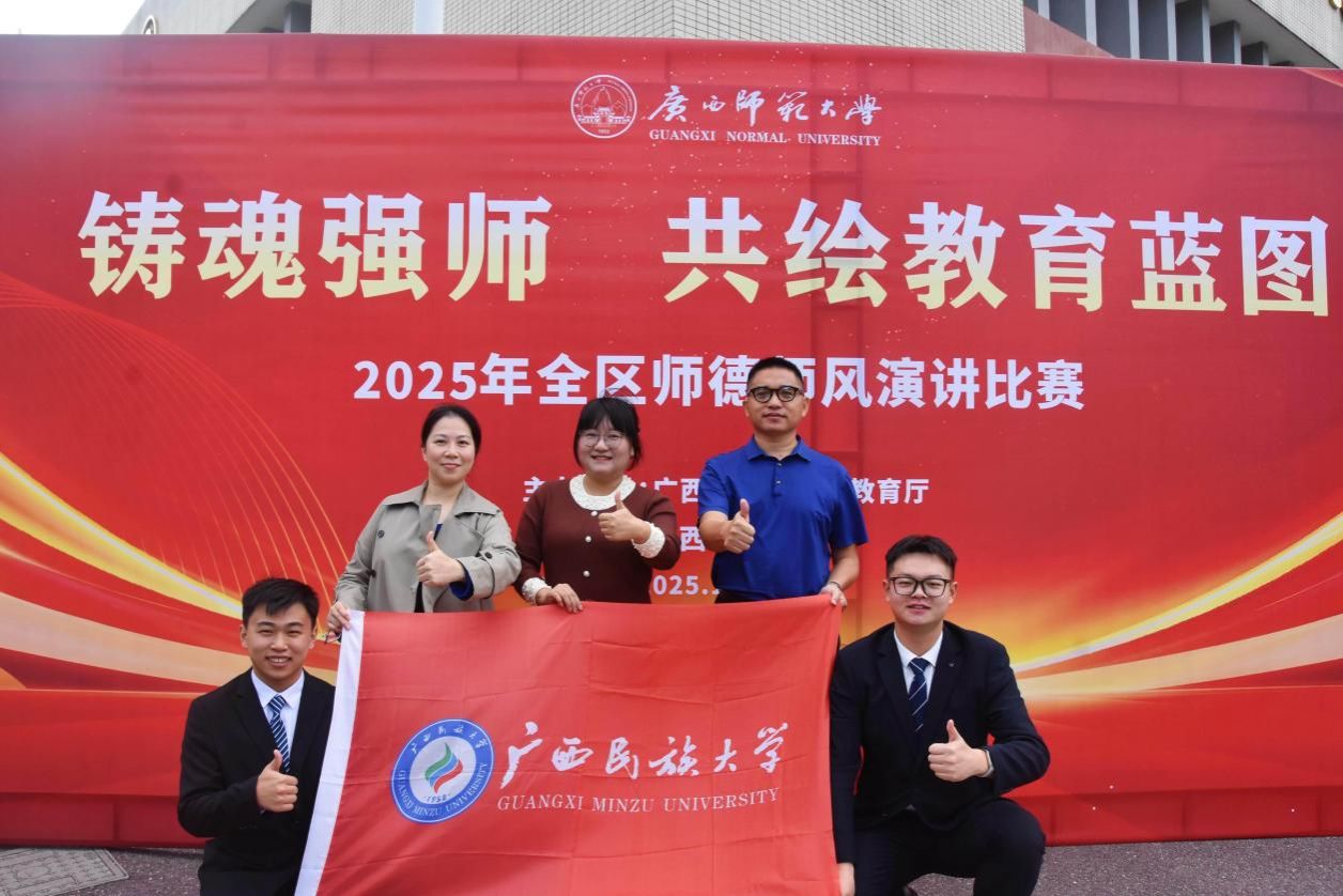 11月9日,由广西壮族自治区教育厅主办的“铸魂强师,共绘教育蓝图”2025年全区师德师风演讲比赛在广西师范大学育才校区圆满落幕。beat365英国官方网站两名参赛选手,文学院2025级汉语言文学专业(师范方向)本科生王昊、民族学与社会学学院2024级历史学专业(师范方向)本科生霍宇轩表现亮眼,分别斩获高校师范生组一等奖和二等奖,刷新学校在该赛事上近五年来的最好成绩。