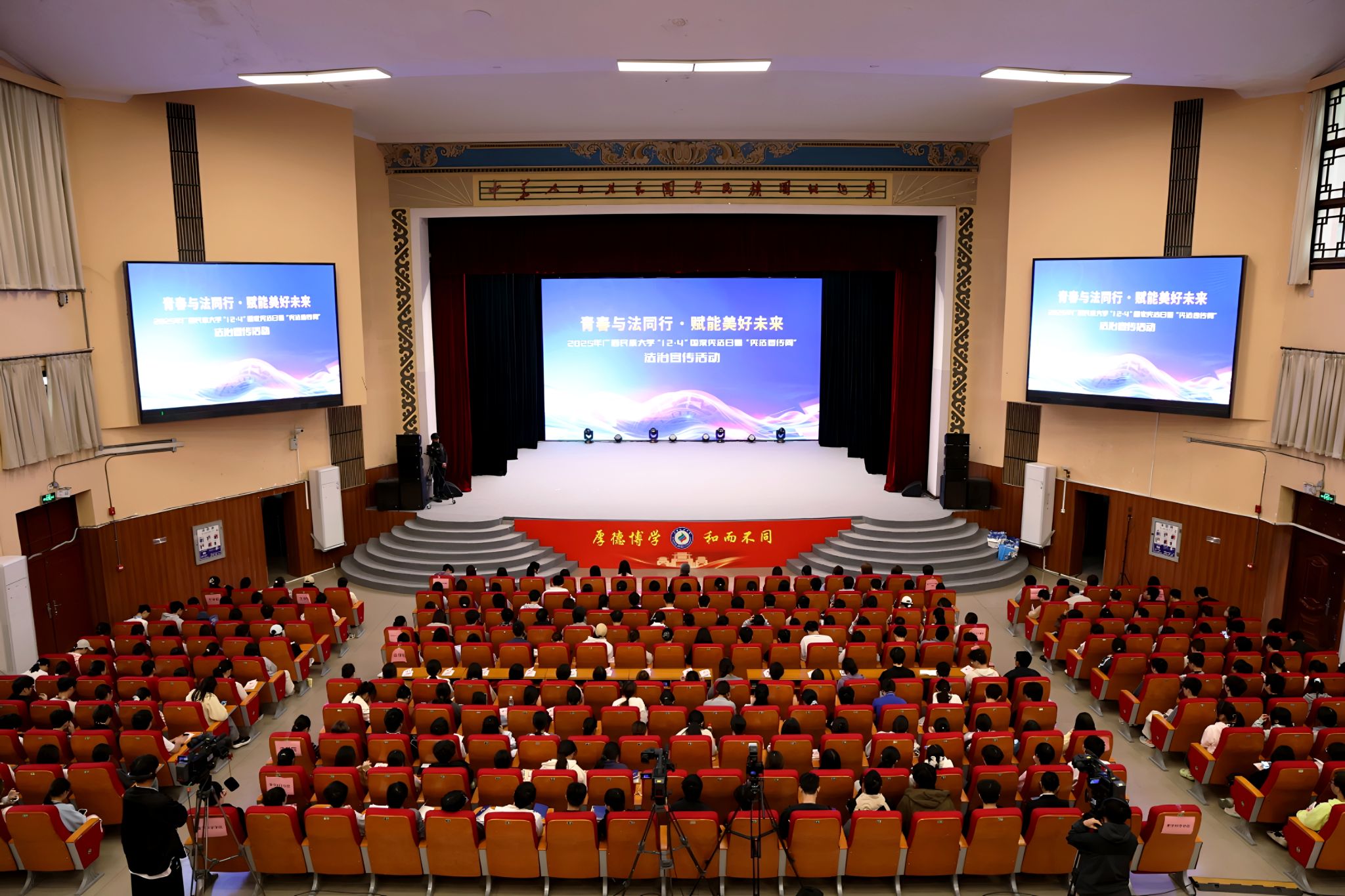 本次活动是司法部、全国普法办、中央广播电视总台联合推出的《平安中国2025——同心共筑 与法同行 走进广西南宁》系列活动之一。活动以“青春与法同行·赋能美好未来”为主题,通过内场文艺汇演和外场沉浸式普法体验相结合的形式展开。内场法治校园文艺汇演在大礼堂举行,外场活动在铸牢中华民族共同体意识体验园同步开展。