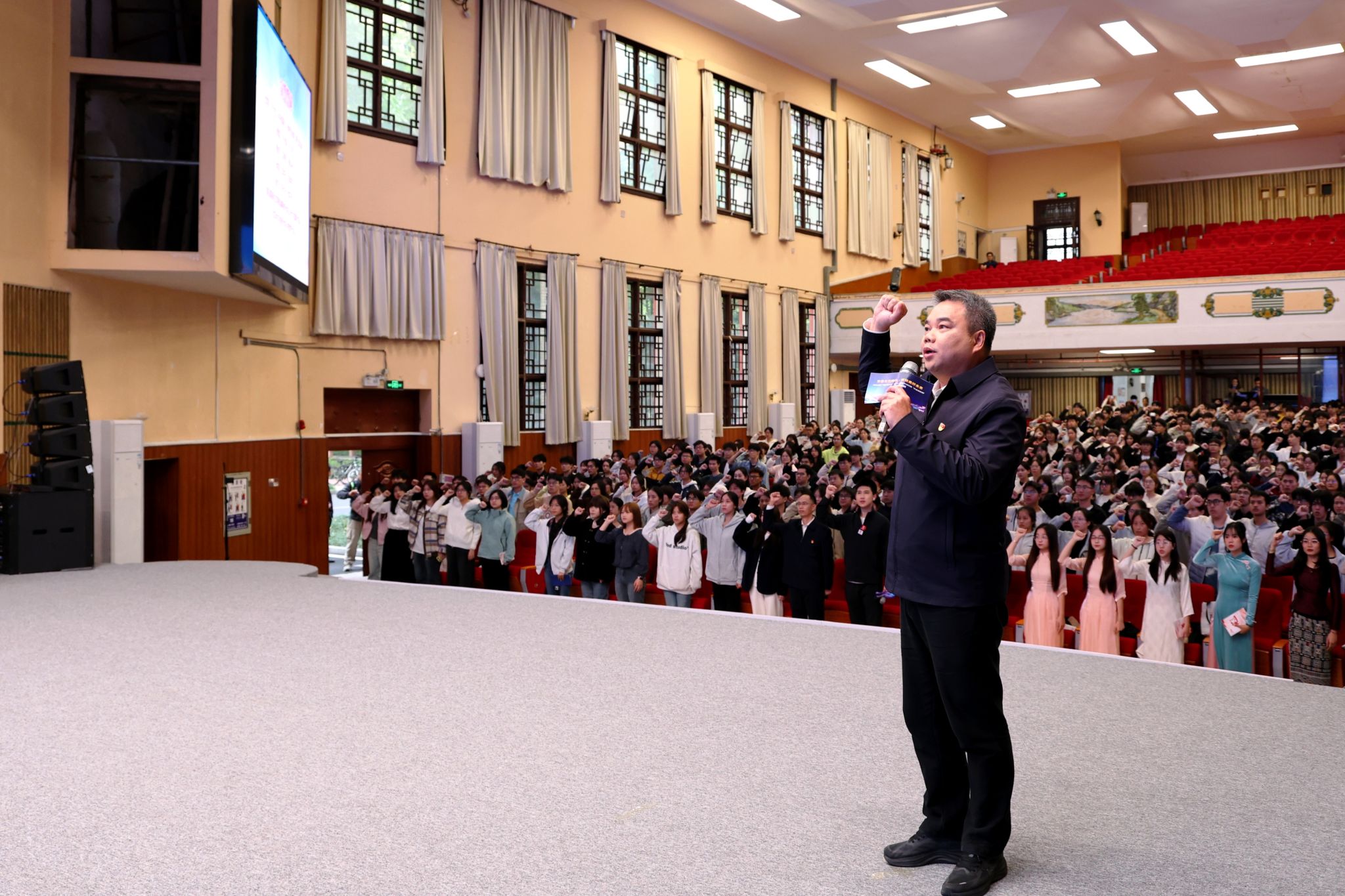 陈铭彬带领全体在场师生庄严宣誓