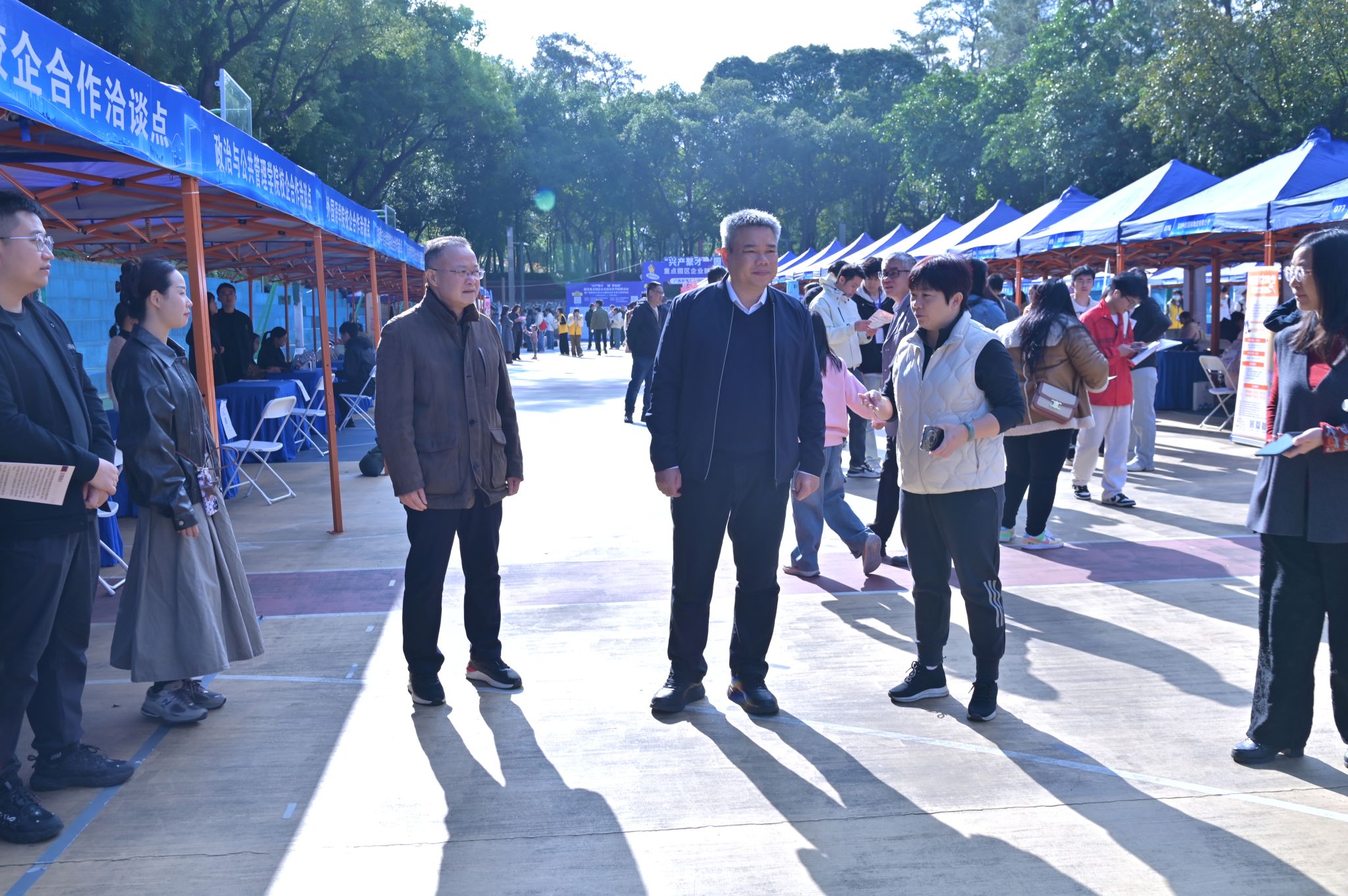 【大学生通讯社报道】12月14日上午,beat365英国官方网站2026届毕业生冬季大型双选会在相思湖校区灯光球场举行。学校党委副书记陈铭彬到场调研,了解双选会有关情况。