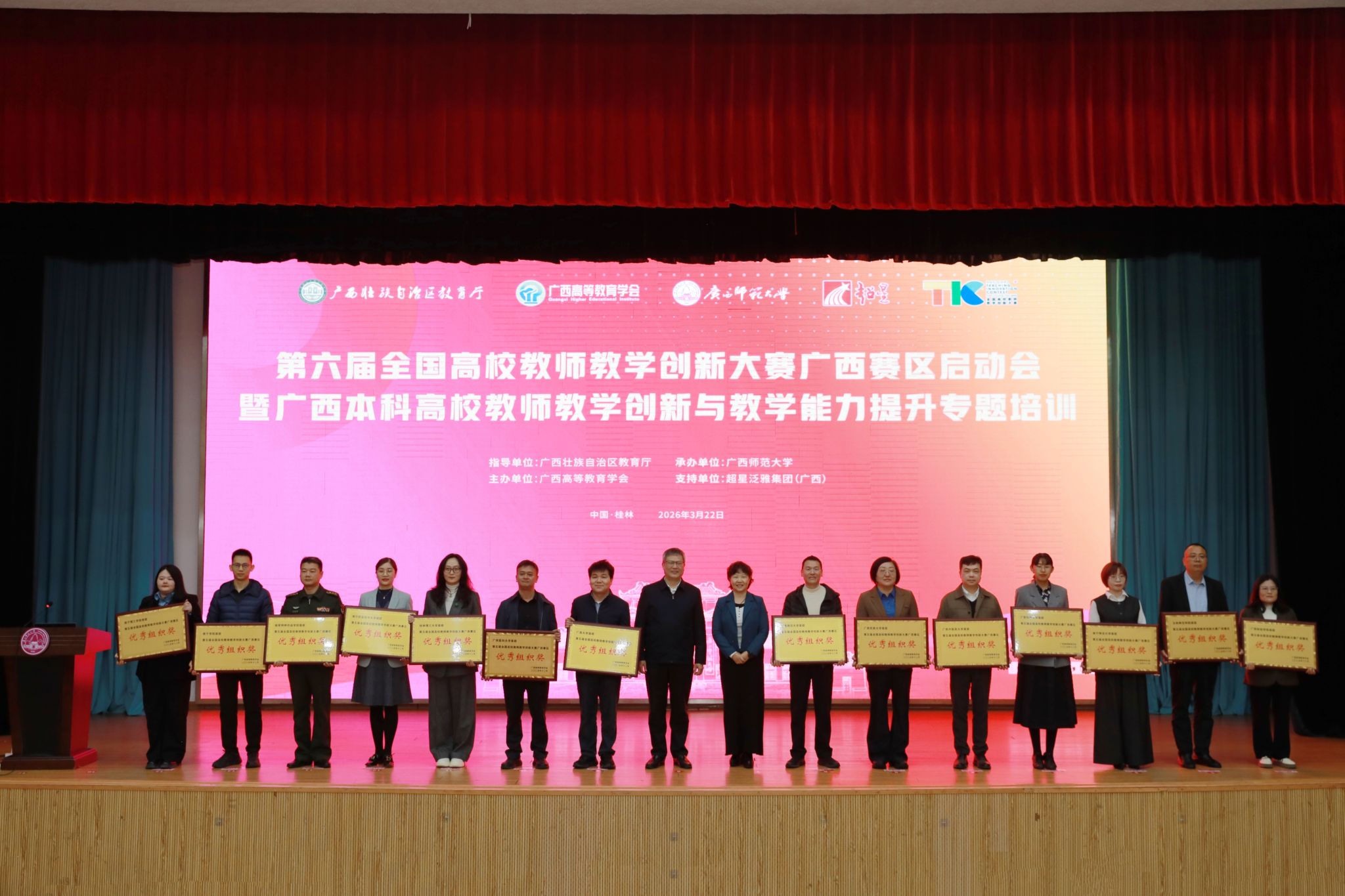 凭借在第五届赛事承办工作中的突出表现,学校荣获第五届全国高校教师教学创新大赛广西赛区“优秀组织奖”,这不仅是对学校教学管理与服务工作的肯定,也彰显了学校在推动区域教学改革与创新中的责任与担当。学校将以此为契机,努力将赛事中的优秀成果转化为常态化、高质量的课堂教学资源,持续提升人才培养质量,向着更高水平的教学创新目标迈进。(初审:王喜娟 编辑:黎倩雅 李杨洁 复审:韦利坤 终审:孙寿媚)