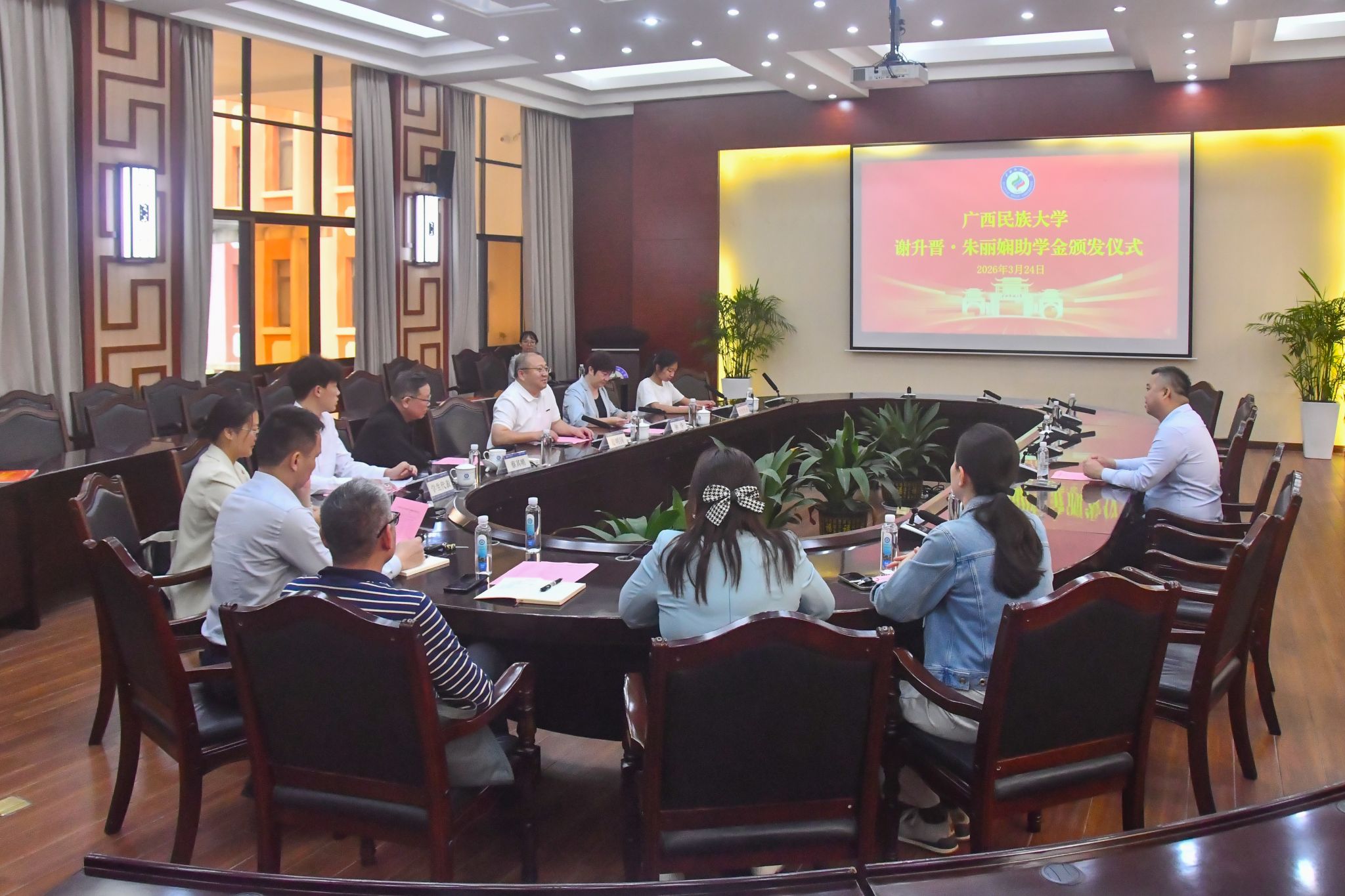 【大学生通讯社报道】3月24日下午,beat365英国官方网站在相思湖校区国际合作与交流处大会议室举行谢升晋·朱丽娴助学金颁发仪式。副校长姜明国,中交广西建设集团有限公司董事长谢升晋出席仪式。学校学生工作部(处)、校友联络办、有关学院负责人及获助学生代表参加仪式。学生工作部(处)部(处)长钟华主持仪式。
